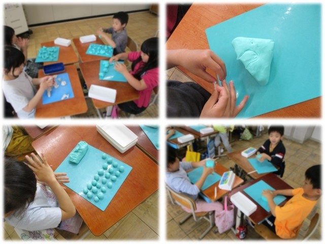 【2年生】にぎにぎ ねんど 公開日 2026/04/28 更新日 2026/04/28 2年生のページ 図画工作の学習の様子です。粘土の体操をして、粘土と仲良くなってから、ぎゅっと握って見えた形から想像を広げることができました。
