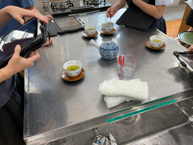 家庭科では「お茶入れ」しました。食器などを洗うところから始まり、お湯をわかしお茶を入れました。「少し苦い」という声もありましたが「おしいしい」という声もありました。またお家でもお茶をいれてみてくださいね。