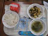 9月12日 肉みそいため わかめスープ 麦ご飯 じゃこ 牛乳