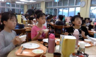 水泳をがんばり,おなかがすき,待ちに待った夕食です。しっかりと食べました。