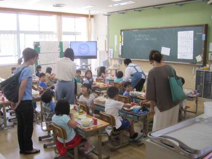 (3)給食の参観(1年生が給食を食べる様子)