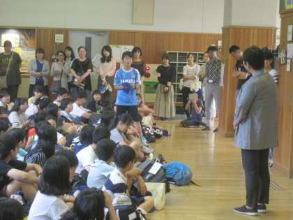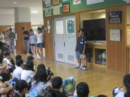 楽しそうに土産話をしたり,おみやげを見せたりしていました。
