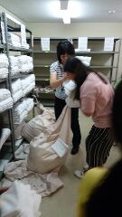 4日間お世話になった海の家の部屋や施設を感謝をこめて掃除しています。またシーツなども返却します。