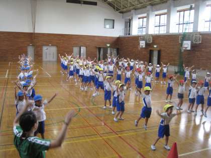 リズムにのって,からだをいっぱい つかって,おどってくださいね。」