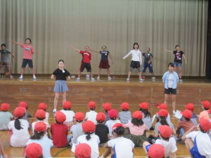 昼休み,体育館に集まって赤組全体で応援練習をしていました。