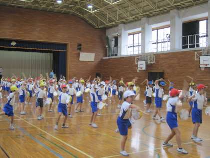 誘われるように体育館に行ってみると,3年生が自作のパーランクーを片手に踊っていました。