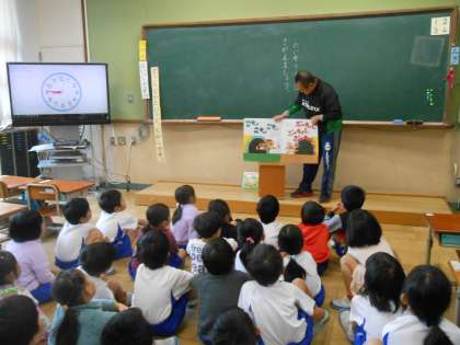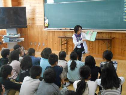 先生の読み聞かせを行いました。朝読書の時間に,担任の先生とは違う先生が教室に行って本を読みます。3年生の先生が6年生に,6年生の先生が1年生に・・。子どもたちはどの先生が来て,どんな本を読んでもらえるのか,とても楽しみにしていました。