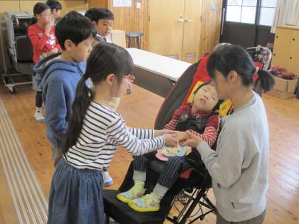 渡す時,「また来てね。」「楽しかったよ。」「また,いっしょに遊ぼうね。」と一言かけて握手をする姿がとても素敵でした。