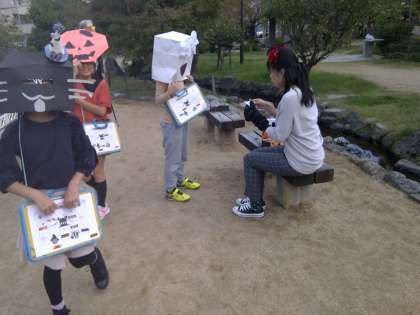 今年度の英語キッズは,10月27日(土)に公園に行って,先生にインタビューをしてTreatをもらいました。