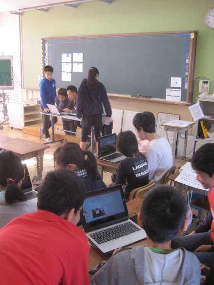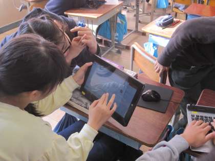 ポータブルのタブレットやノートパソコンはとても便利です。以前なら,パソコン室でしかできなかった学習が自然と教室で行うことができます。