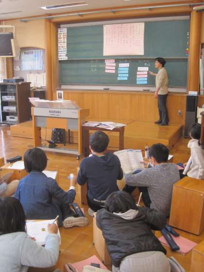 6年1組は,滝廉太郎さんの「箱根八里」を内田先生と井上先生と一緒に鑑賞していました。「箱根八里」。自分も大好きな曲です。