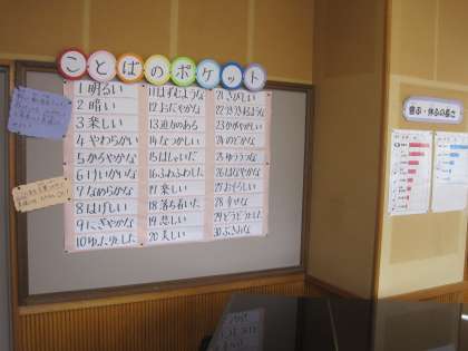 鑑賞して感じたことを熱心に書いている子ども達から壁に目をやると,こんな掲示物が。鑑賞するときにどう書けばいいか考える時に役立ちます。
