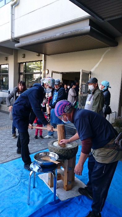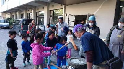 2日は、各学区で少年補導の皆さんを中心に恒例の「餅つき大会」