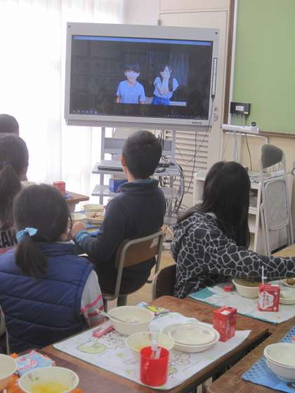 その結果の一つとして,給食時間に,ビデオ放送が行われていました。