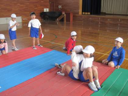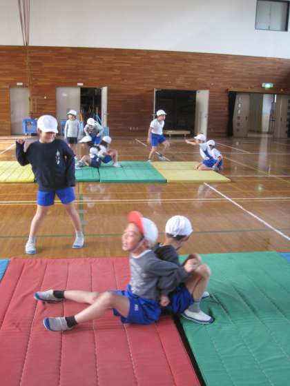 2年3組のみんなが「すもうあそび」をしていました。
