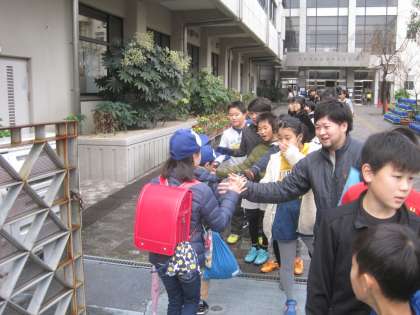 50人以上で,おはようハイタッチ!!
