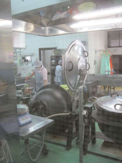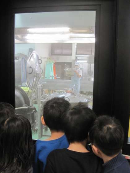 今日の中間休みに1年生を対象に給食室見学を行いました。