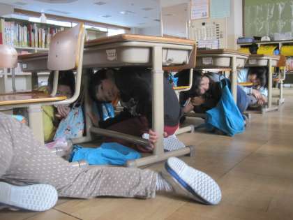 その日に合わせて,例年,この時期に地震を想定した避難訓練を行っています。