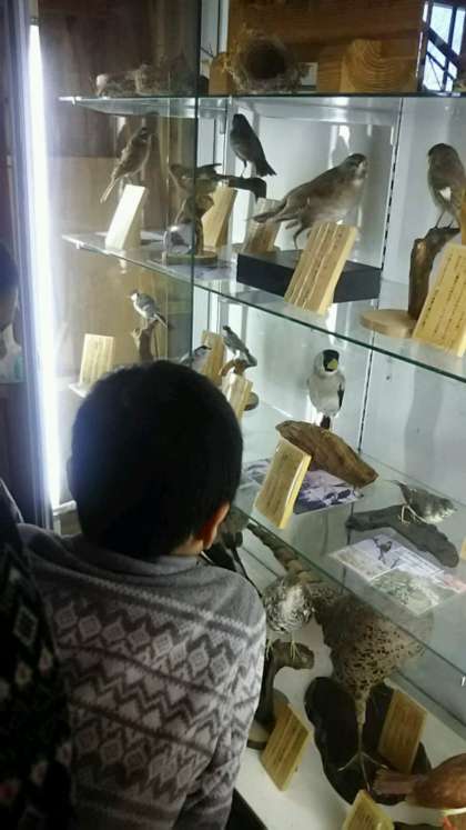 食事後の休憩時間に珍しい鳥を発見しました。イカルという鳥だそうです。双眼鏡を使って観察しました。これも,山の家での1つの思い出になりますね。