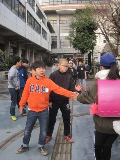 寒い中でのあいさつ運動。心があたたまりますね。「ありがとう!」