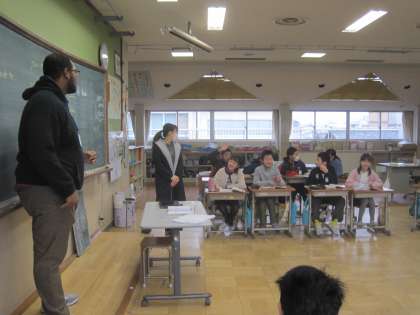 6年1組がALTの先生といっしょに中学校生活について英語で話していました。