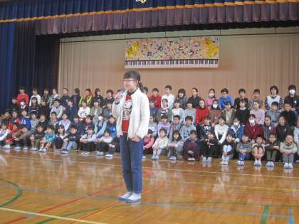 5年生は,会の進行や言葉の係をしました。6年生がいない中でも,しっかりと会を進めていました。来年度への期待がふくらみました。