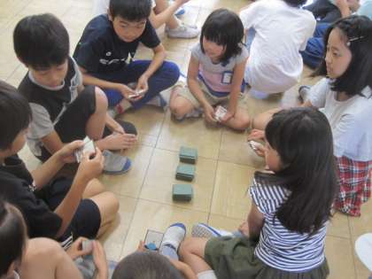 今日は中間休みにトランプや百人一首(ぼうずめくり)などをしてたてわりの班で遊びました。まだまだ緊張している班もあれば,もう打ち解けている班もありました。