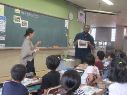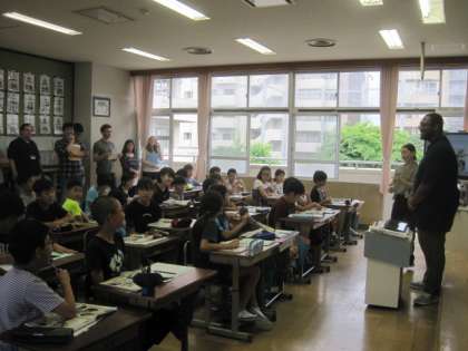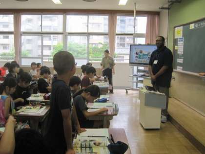 そのALTの先生方が今日,本校に集まって研修会を行っていました。5年生の授業を参観した後,話し合いをしておられました。