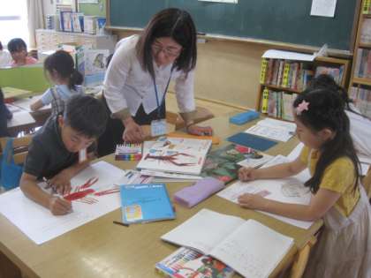 「2年生。すごいですね。できあがったら,また見せてくださいね。」