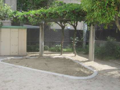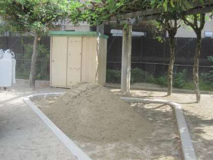砂場に砂が入りました。一番上の写真が2立米(2立方メートル)の砂です。
