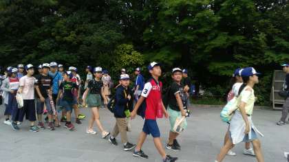 時間通りに全員集合し、話を聞く姿勢が取れました。互いに声を掛け合う姿も見られます!これから,ホテルに向かいます。