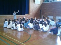 海の家に向かうバスの中の様子です。楽しく過ごしています。お天気も,薄日が差しています。