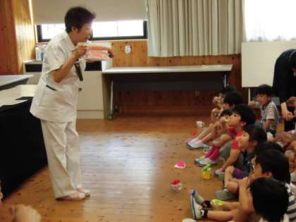 歯科衛生士さんの楽しいお話を聞きながら,歯みがきのしかたを学習しました。