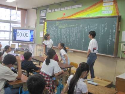 6年生の子ども達が,行動目標が達成できていたか話し合っていました。最後は,みんなの拍手で話し合いを終えていました。