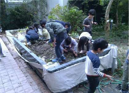ランチルームの裏にある畑に植えたおいもをほっていました。結構大きなのがとれたそうですよ。これからどうするか楽しみですね。