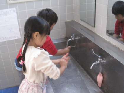 今年の1月に京都新聞にも取り上げていただきましたが,学校では冬場,朝や休み時間の後に,手洗いを促す音楽を流すなど,手洗い・うがいや規則正しい生活習慣の定着などのインフルエンザを含む風邪の予防に取り組んでいます。