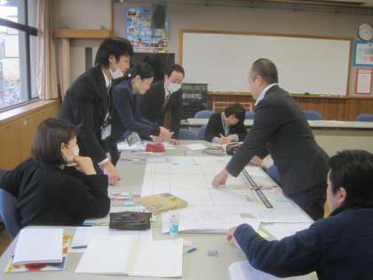授業のあとは事後研究会。教職員で熱心に授業をふり返りました。久しぶりの国語の研究だったので,教職員もいろいろな考えを出し合い,どれが最善か話し合っていました。