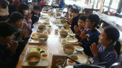 初めての山の家での食事をいただきます。バイキング形式で,今日は主菜をカレーかラーメンを子ども達が選択します。しっかり食べて,午後の活動に備えましょう。
