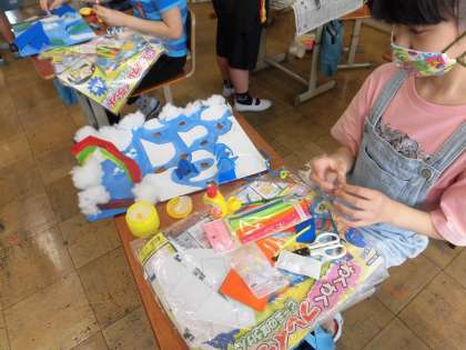 「綿をくっつけて雲にしよう」