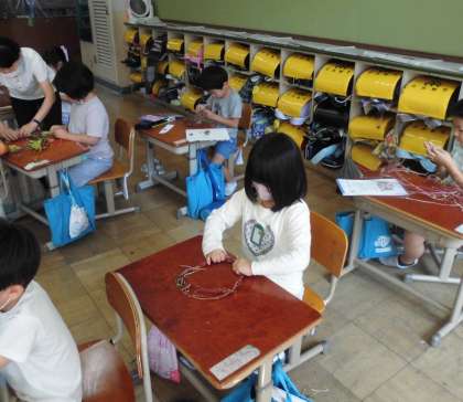 たね植え,水やり,観察,色水あそび・・・といっぱい学習に役立ってきたMyアサガオ。今日で鉢植えとはお別れし,リースになりました。乾いた頃にはかざり付けもあり,まだまだ活躍してくれそうです。