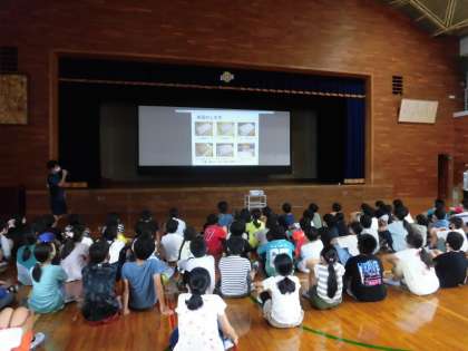 この日は学年で集まって,スライドや写真を見て,山の家の活動や施設の様子などを確かめました。