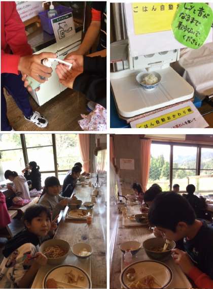 おかわりのご飯は、ちゃわんを置くと機械から自動で出てきます。