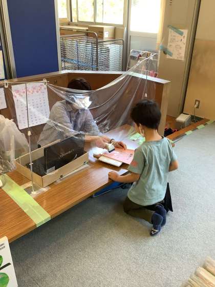 自分たちだけで借りられるように熱心に話を聞き,「どれにしようかな」と本を選んでいました。