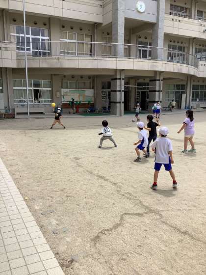 休み時間にドッジボールを始めました。