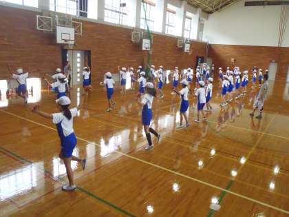 本日の体育の学習は本番を想定した立ち位置の確認や全体の動きを練習しました。先週までは踊りに全力になっていた子どもたちにも余裕が生まれ、声出しやポージングにも意識的に取り組みました。