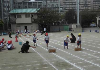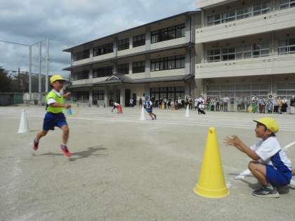 折り返しリレーでは、レースごとに「ジグザク」「おきかえ」などとちがったかだいに挑戦し、バトンをつなぎました。練習の成果を発揮してどのミッションも上手にこなしていました。