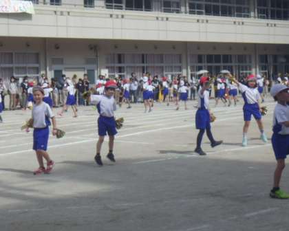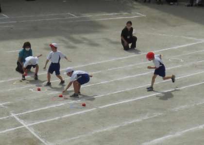 チャレンジ走は、赤白のボールを素早く運んだあと、ゴール目指して突っ走りました。パワー全開の2年生でした。