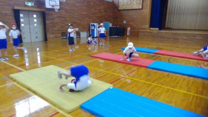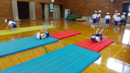 手や頭のつき方に気を付けて、きれいに回ることができています。