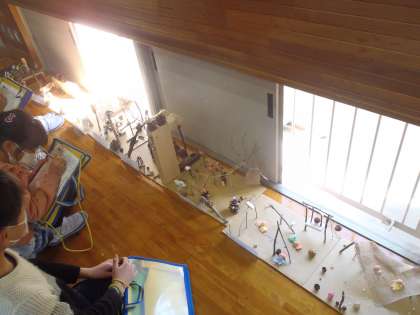今日は学年合同で「ひみつのすみか」の鑑賞に取り組みました。ダイナミックに木を組み上げていく子や、緻密に作り上げていく子、それぞれの個性が生かされた素敵な作品になりました。また、単元の最後には紙粘土でそのすみかに住む住人を作成しました。動物壮氏が触れ合ったり、家族が暮らしていたり…とてもかわいらしく見ていてとても和やかな気持ちになる作品ができたと思います。材料等の準備もありがとうございました。