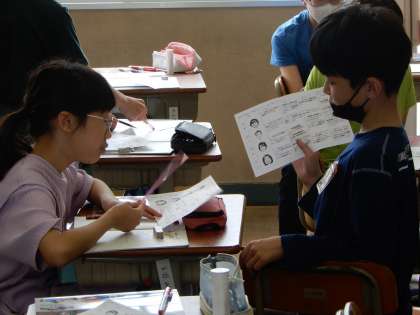 社会科の学習で、模擬選挙を行いました。各候補者のマニフェストをじっくり読み、友だちと意見交換をしながら、真剣に学習に向かっていました。